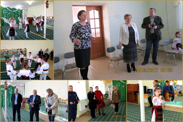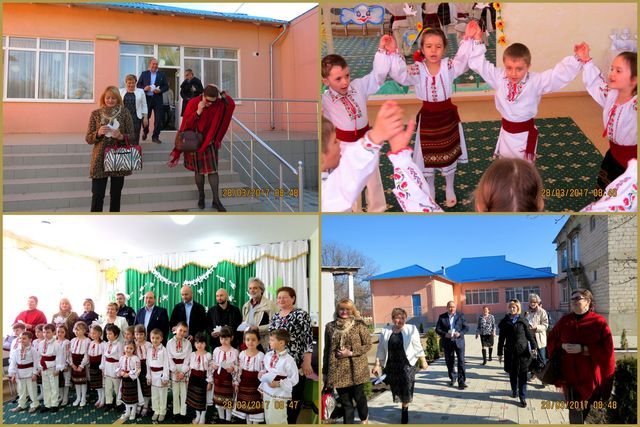 Aici, au fost întimpinați de directorul grădiniței, Ecaterina Onica, care le-a adus la cunoștință actualele probleme ale Instituției: necesitatea construcției unui bloc nou al grădiniței, insuficiența locurilor disponibile în sălile de grupă și izolarea fațadei grădiniței. La finalul întâlnirii, prichindeii le-au înmânat oficialilor câte un porumbel confecționat de mânuțele lor și au susținut un mini-program artistic.