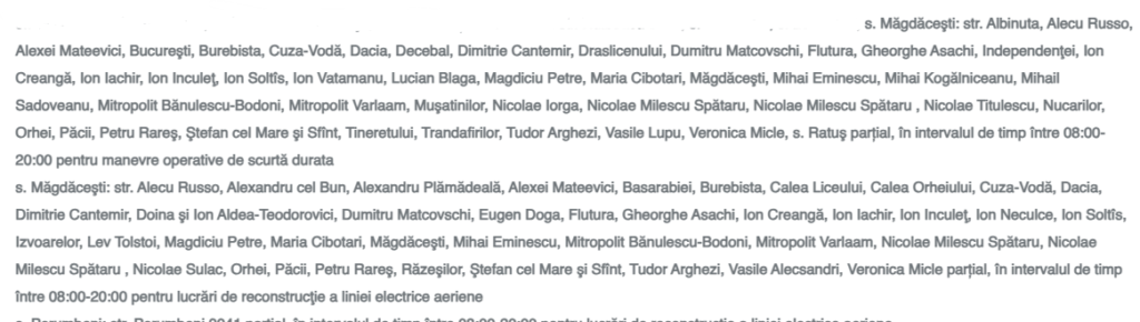 Operatorul de distribuție îṣi cere scuze pentru incomoditățile create de întreruperile programate, care sunt absolut necesare pentru realizarea acestor activități.