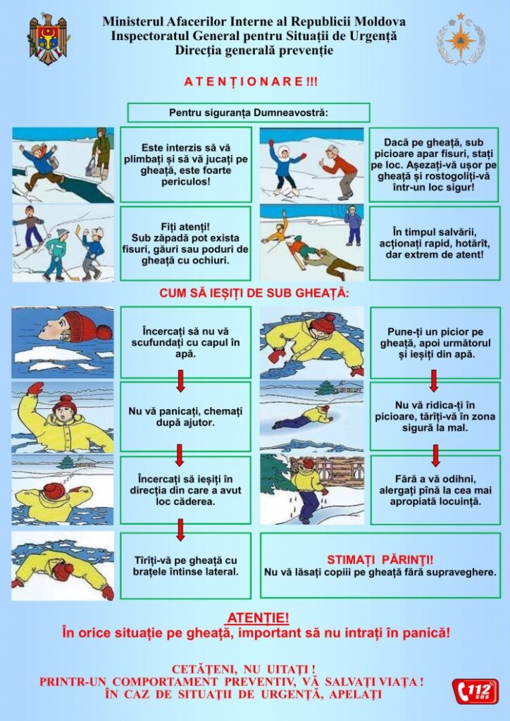 Stimaศi locuitori, vฤ aducem la cunoศtinศฤ cฤ, odatฤ cu rฤcirea vremii ศi formarea podurilor de gheaศฤ, este important sฤ respectฤm mฤsurile de siguranศฤ pentru prevenirea incidentelor pe apฤ ศi gheaศฤ.