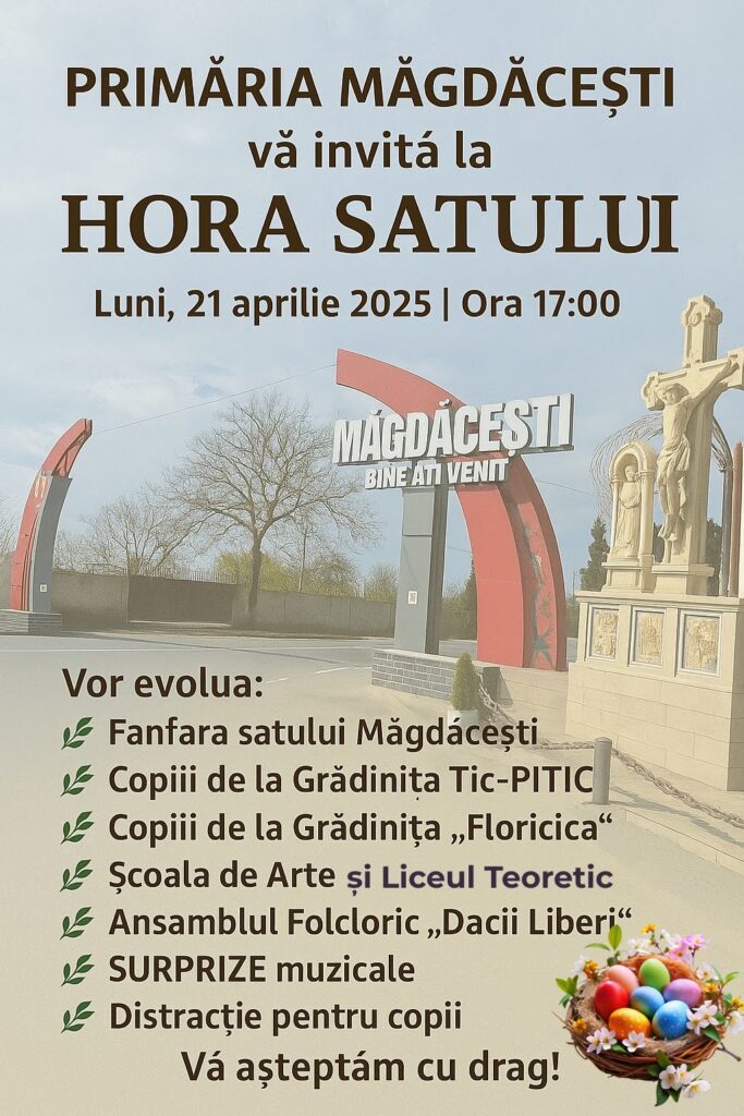 Uncategorized๐๐ฬ๐ฌ๐ญ๐ซ๐ฬ๐ฆ ๐ญ๐ซ๐๐๐ข๐ญฬฆ๐ข๐ ๐ฌฬฆ๐ข ๐ฏ๐ฬ ๐ข๐ง๐ฏ๐ข๐ญ๐ฬ๐ฆ ๐ฅ๐ ๐๐๐๐ ๐๐๐๐๐๐๐, ๐๐ ๐๐๐ฌฬฆ๐ญ๐ข! Posted on April 18, 2025April 18, 2025 by Olga Enachi Anunศ de convocare a Consiliului sฤtesc Mฤgdฤceศti Sฤrbฤtori cu luminฤ!